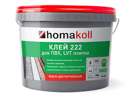 Клей Homakoll 222 – готовый клей для впитывающих воду оснований. Предназначен для приклеивания напольных модульных ПВХ и LVT покрытий, а также рулонных напольных покрытий на разных подосновах: вспененной, джутовой, войлочной и тканой.