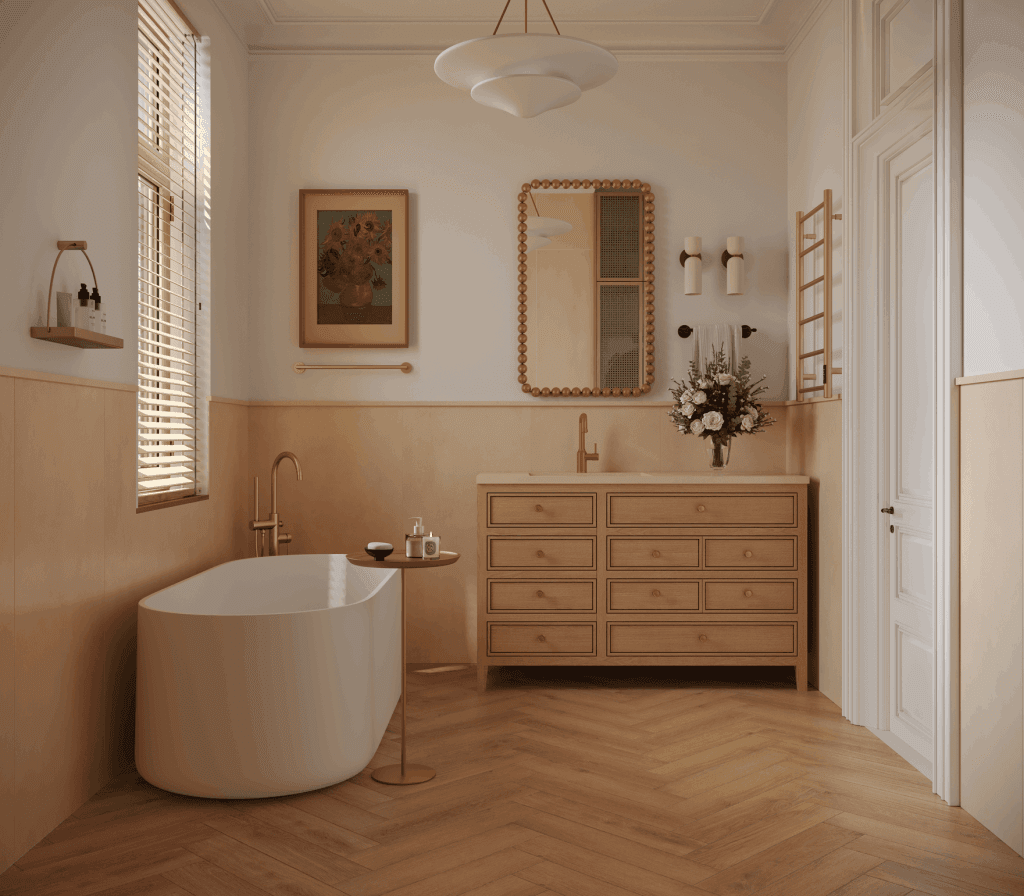NORLAND PARQUET 1066-2 Saver Sand – это ярко выраженный медово-коричневый оттенок. Он удачным образом подходит для классических и современных интерьеров в скандинавском стиле и минимализме. Гармонично сочетается с нейтральным цветом стен и натуральными оттенками мебели, а также с текстилем, коврами и другими элементами декора в теплых тонах.